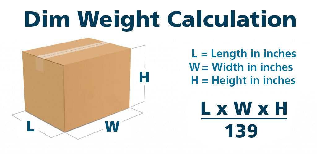 For domestic ground shipments: If the cubic size of the package in inches is 1,728 or larger, divide the cubic size by 139 to determine dimensional weight in pounds. If the cubic size in inches is less than 1,728, use the divisor of 166. Increase any fraction to the next whole pound. Note: Starting January 2015, carriers will use dimensional weight instead of actual weight to calculate the cost of shipping ALL packages. UPS DIM Calc FedEx DIM Calc & Info