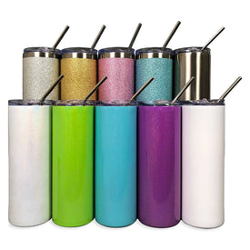 A sublimated 20z skinny tumbler sits in front of the Silverbolt MugPro5. ...