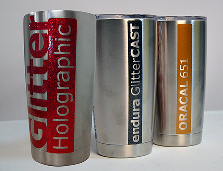 So, if you or your customer are gaga about glitter, you can create and apply blingy vinyl decals to your YETI Rambler or similar drinkware items. With EnduraGLOSS, ORACAL 651, Endura GlitterCAST Ultrametallic, and Schein Glitter Holographic, you have design options ranging from mild to wild. Just remember to keep the adhesive properties in mind when choosing a transfer tape and deciding when to remove it. If you go for the nuclear option and put Glitter Holographic on a Rambler, make it slim & simple. Hand wash them with care to keep them looking really hot or really cool - depending on whether your YETI is loaded with java or iced tea.