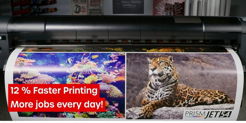 If you choose a more advanced large format outdoor printer like the PrismJET VJ54 Gen2, you will get a refined recipe that delivers the benefits of heat and eco-solvent ink without over-cooking your media. The media temperature is already optimized in the ICC Profile so your prints look sharp and crisp, and your vinyl and banner graphics are dry and ready to use right off the printer. You'll have fewer head strikes and ink smears. And you don't have to worry about vinyl warping so much that you can't tile your prints or contour-cut your decals.