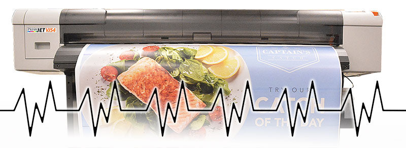 If the piezo print head is the heart of the VJ54, then the ink is its life blood. Ink circulates through the system and produces the stunning output and vivid, durable color PrismJET customers love. But, just as a sedentary lifestyle can lead to heart disease, an idle printer can experience ink flow issues that threaten its well-being. One way to keep your PrismJET VJ54 in tip-top shape is to keep it vital fluids flowing. Keep it running. Weâre not saying that if you donât print five banners a day, your printerâs going to explode. But there are suggested usage levels that will support longevity.